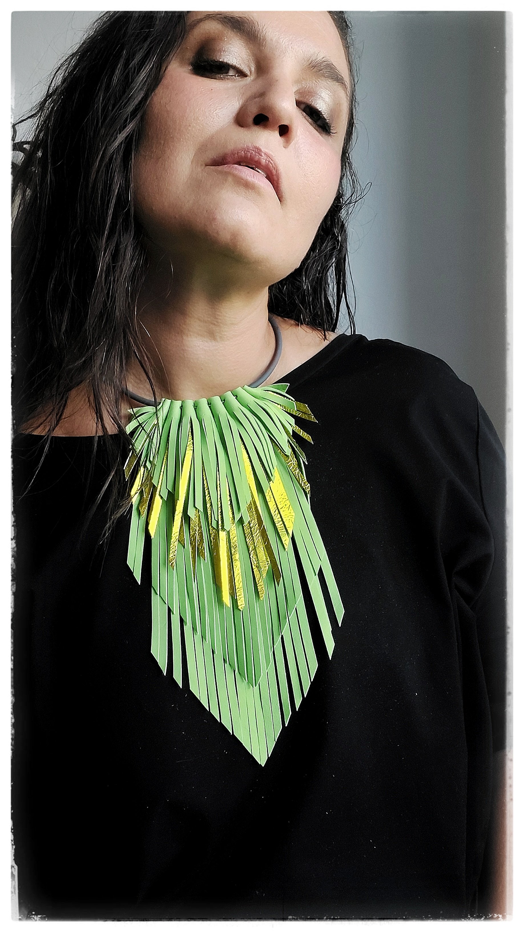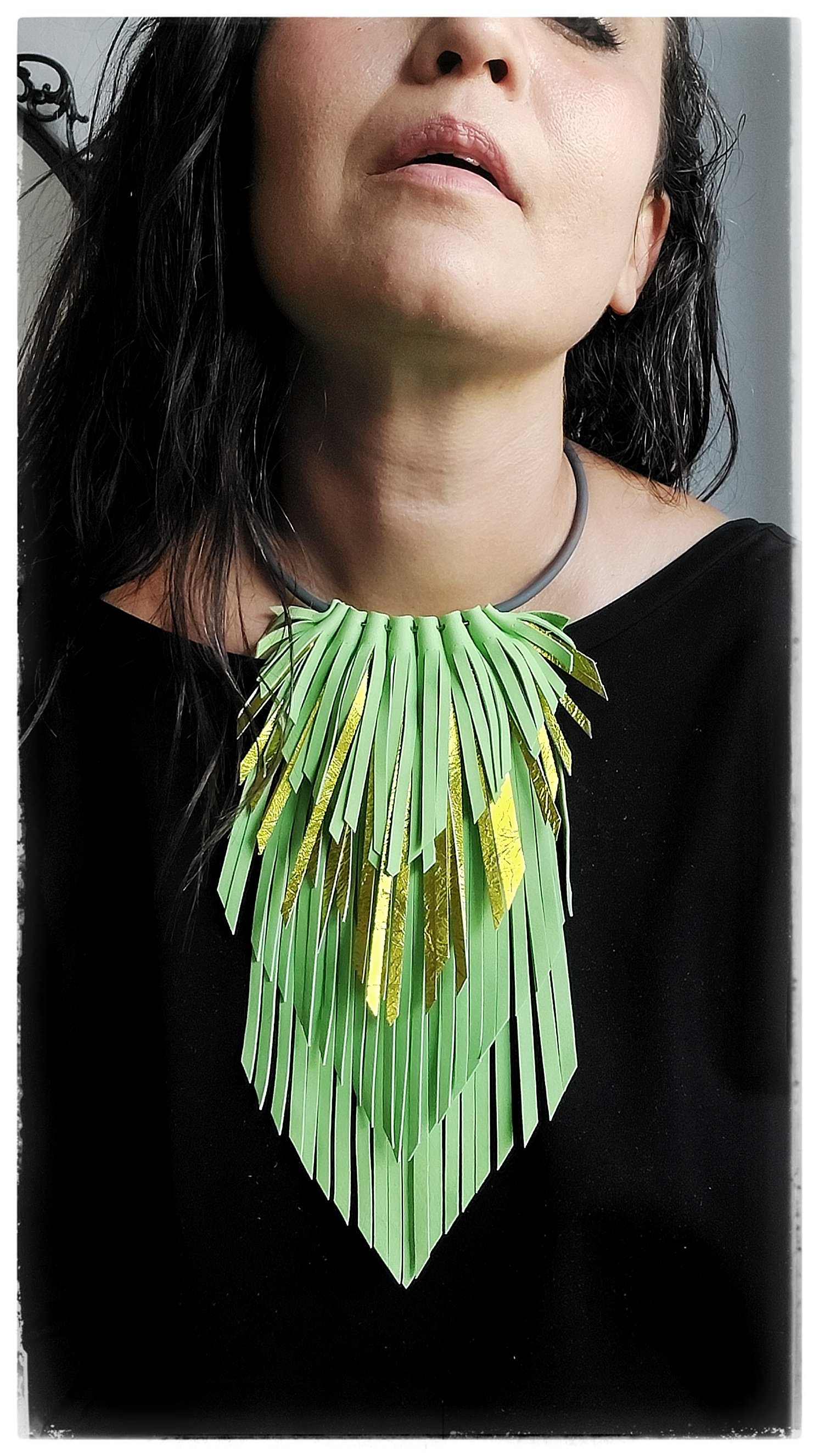 - The fringes, masterfully hand-cut, create a sinuous and hypnotic movement. Every detail is crafted with passion, for a visually impactful result. This necklace is not just an accessory, but a statement of style, an ornament that becomes an integral part of your attire.