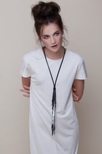 - Leather necklace with vertical development, with an elegant and minimal design, handcrafted with soft and precious Italian leather, carefully selected and exclusively from end-of-series stocks and processing scraps.
