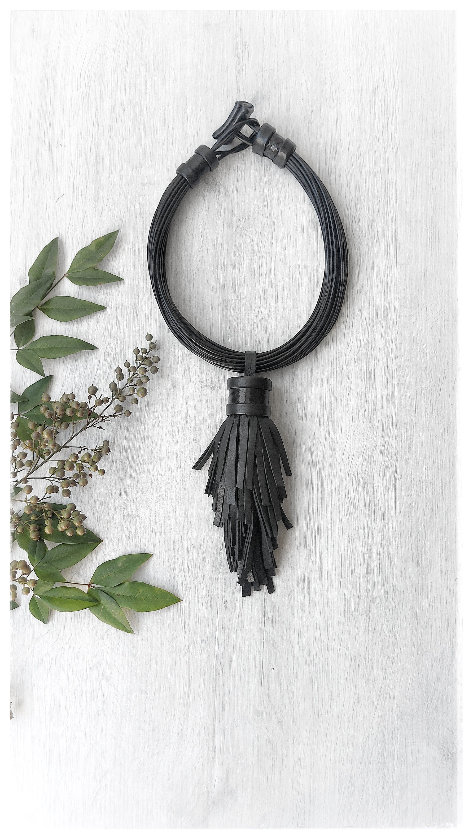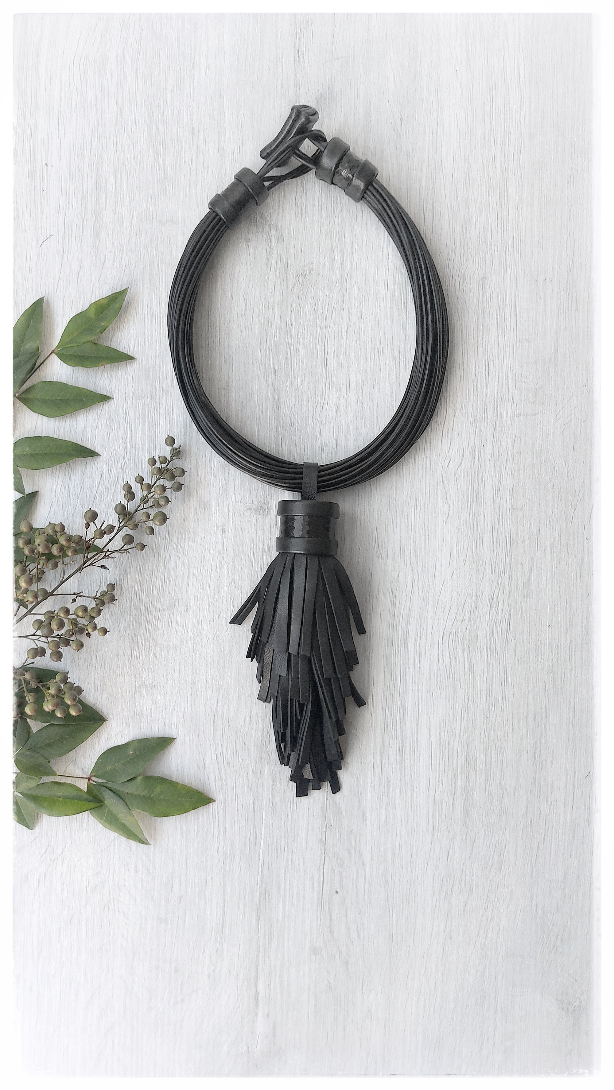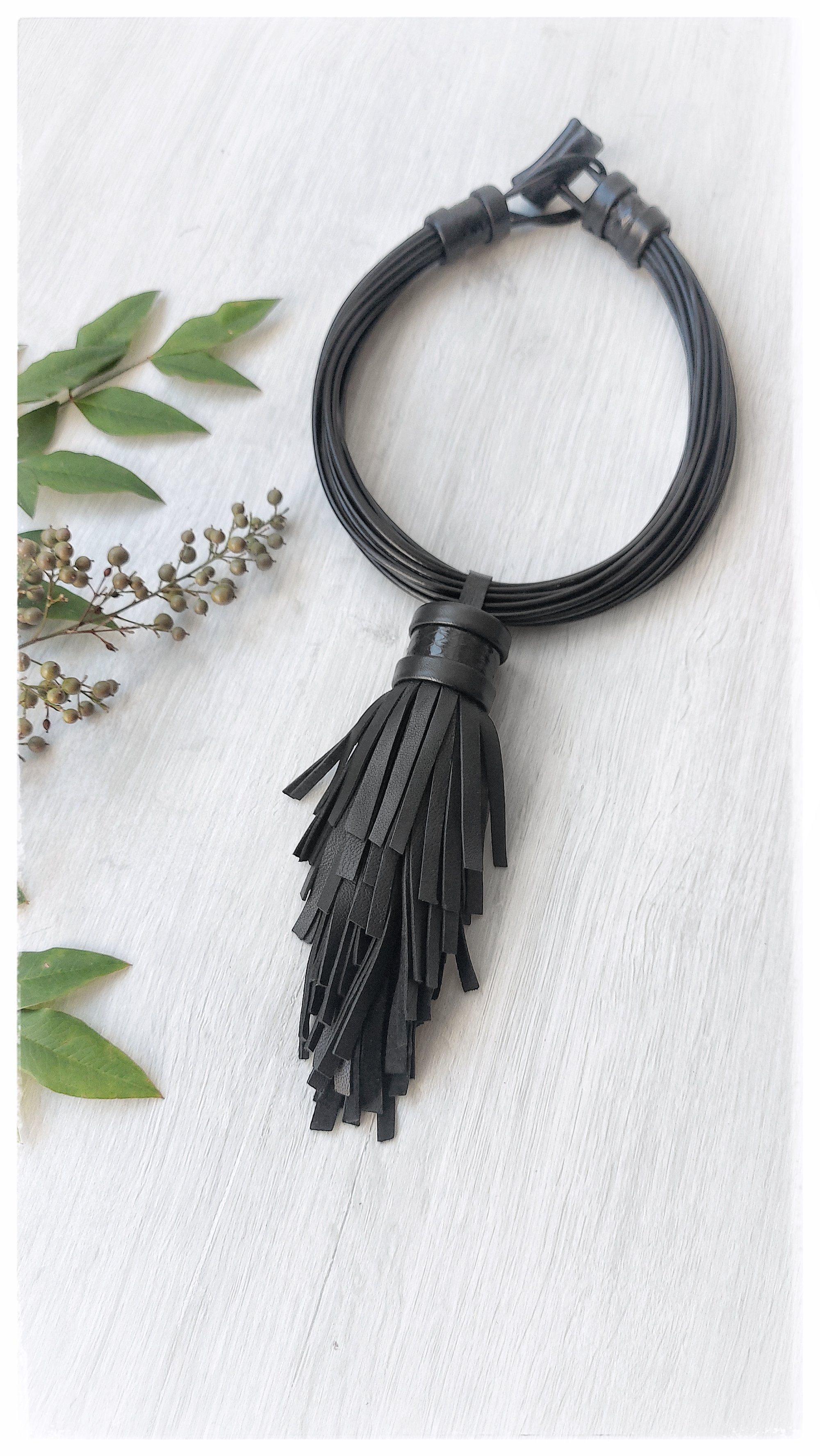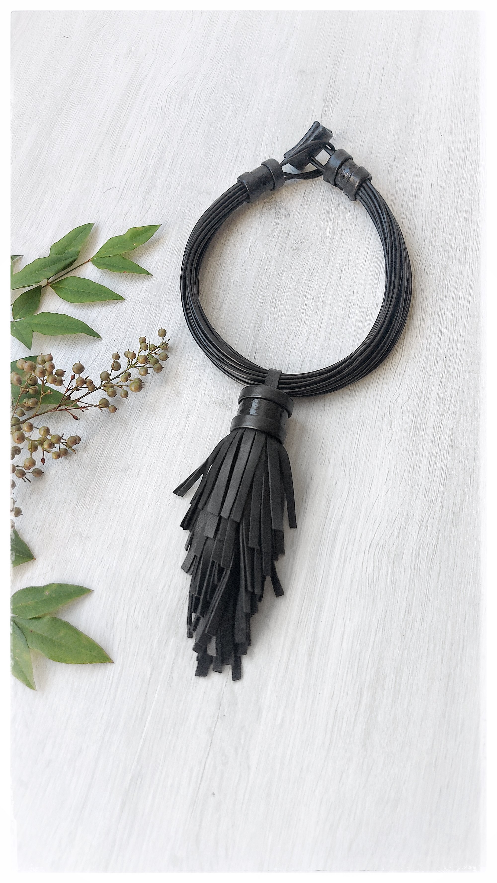 Handmade multi-strand leather necklace.
