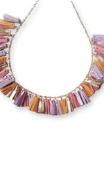 - tangerine, coral pink, gold, metallic pink and lilac leather with gold galvanized chain;