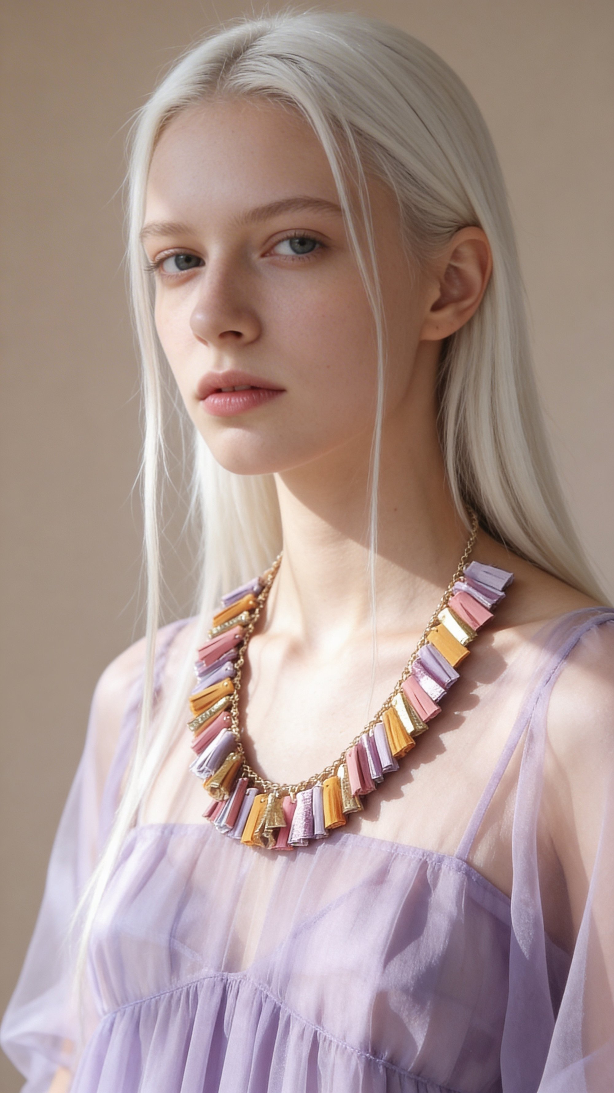 - The necklace is handcrafted without the use of dies: the fringes are hand-cut with care and patience, and every element characterizing its design and creation reflects a deep love for this craft.