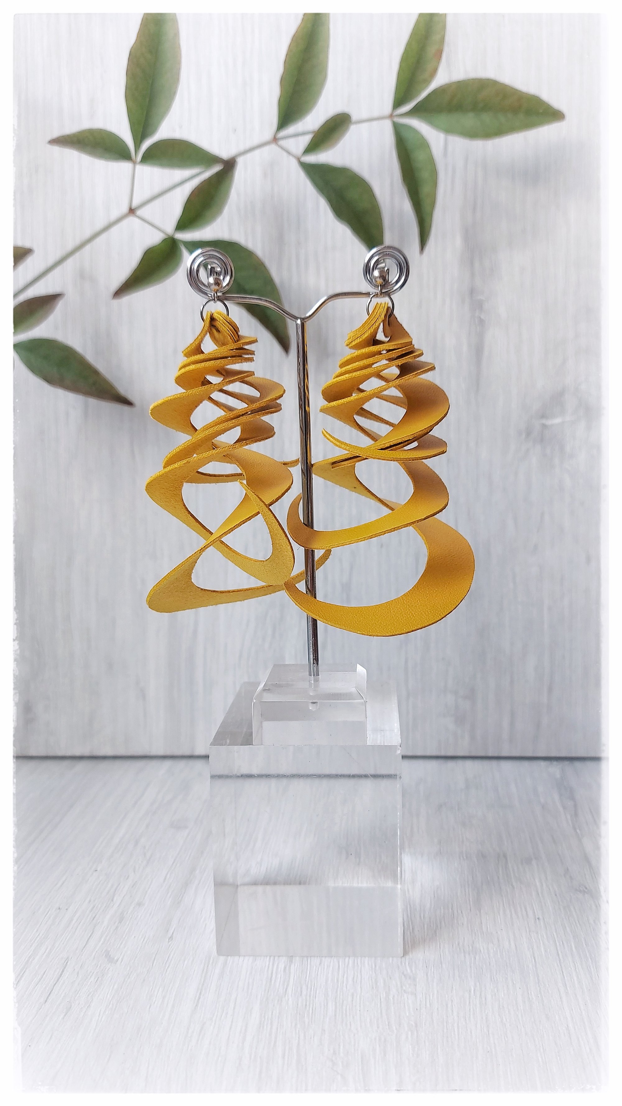 Orecchini artigianali in pelle CURLS - Giallo Caldo