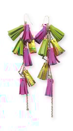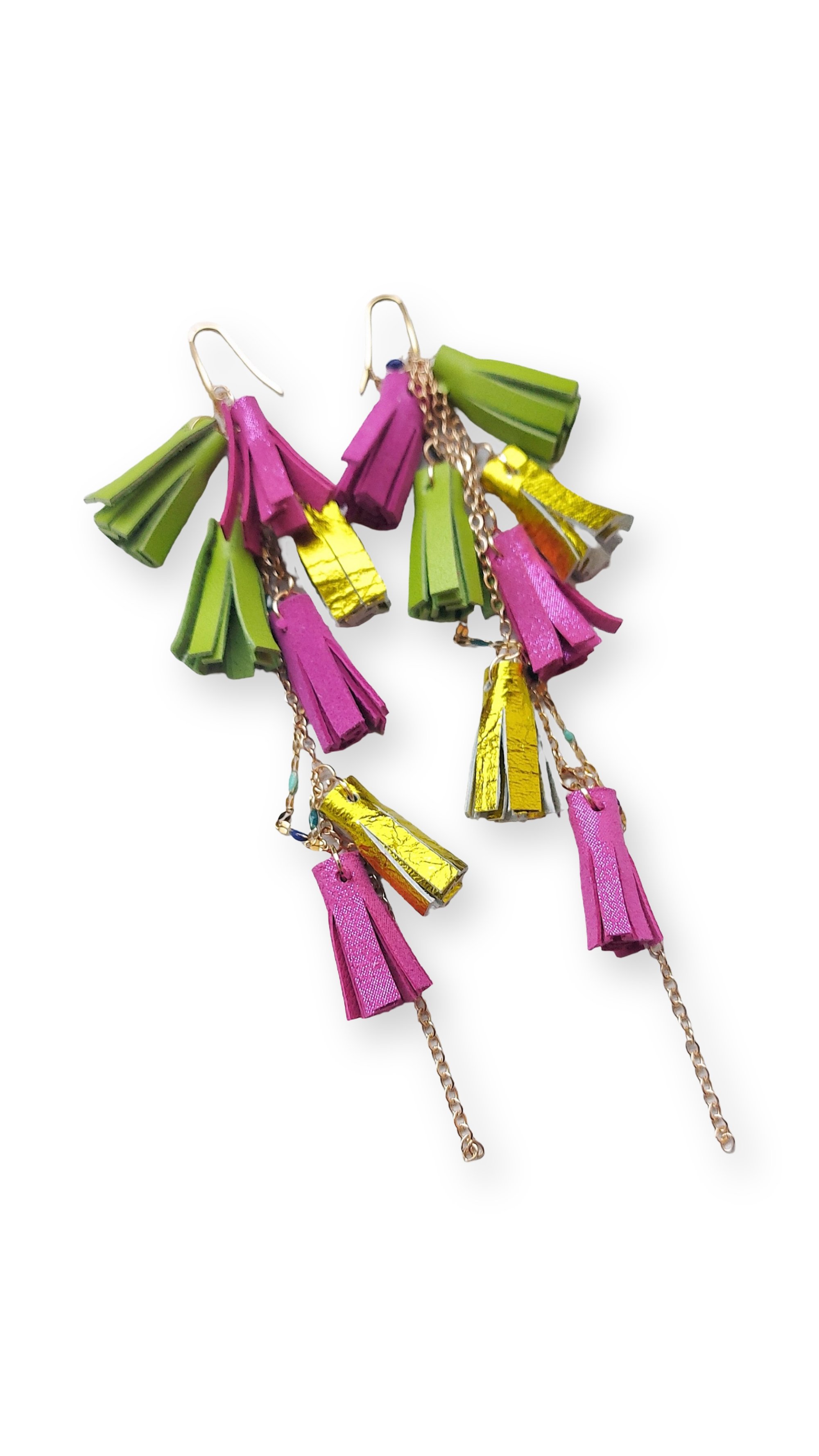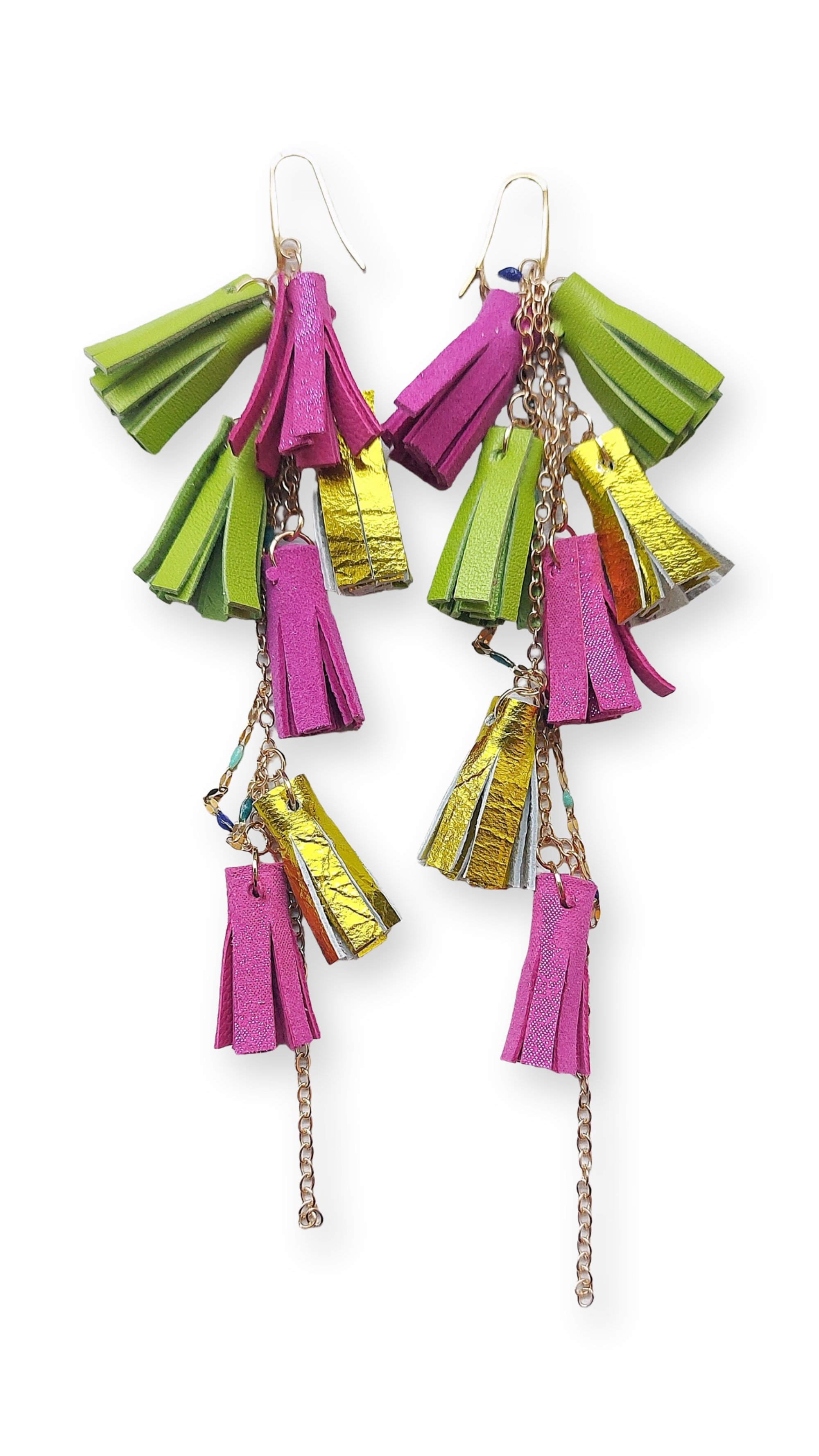 - Dangle earrings with small tassels handcrafted from soft and high-quality Italian leather, carefully selected and sourced exclusively from end-of-line stock and production scraps. Nickel-free chains in various colors, hypoallergenic stainless steel hooks.