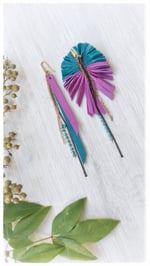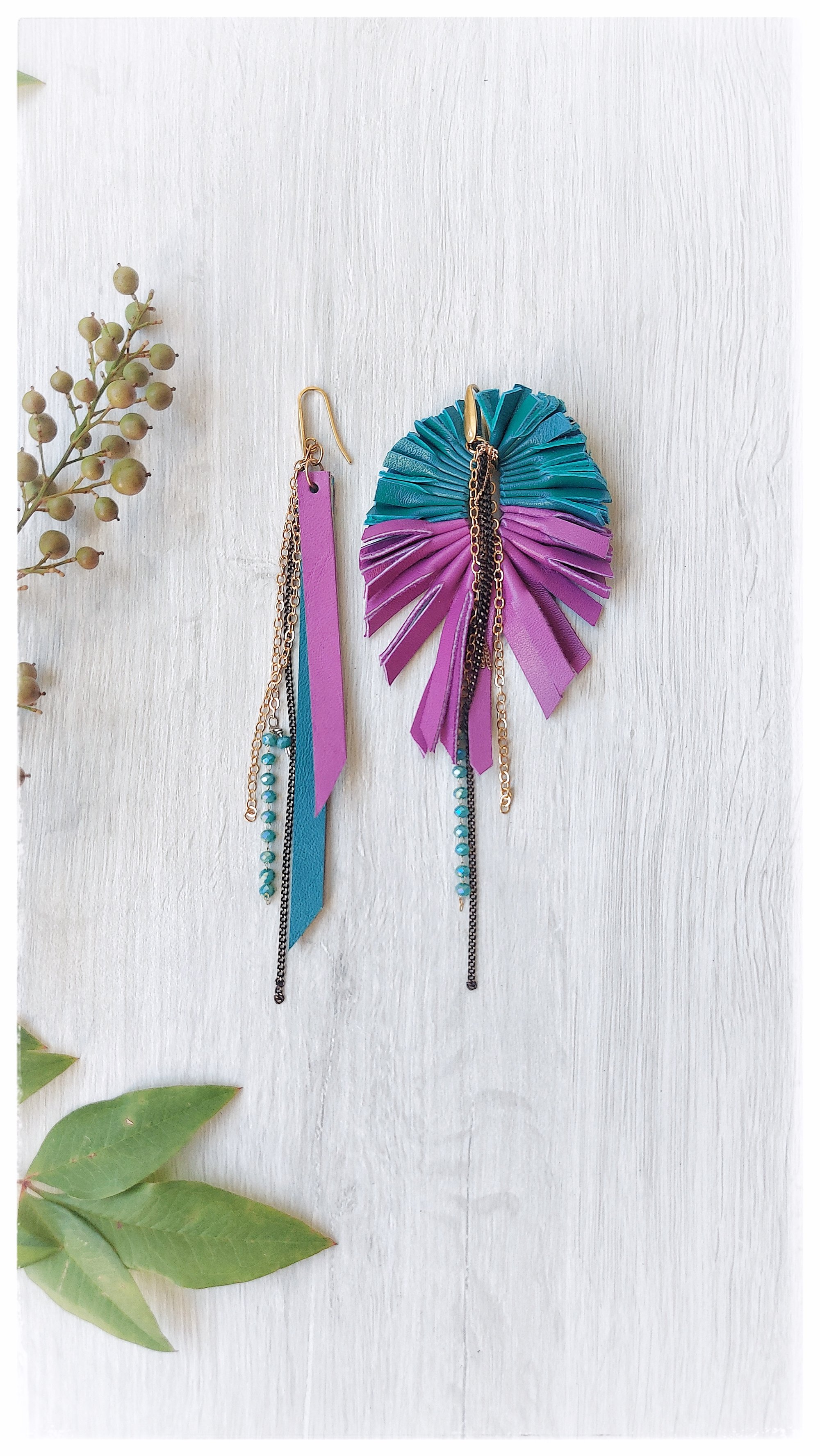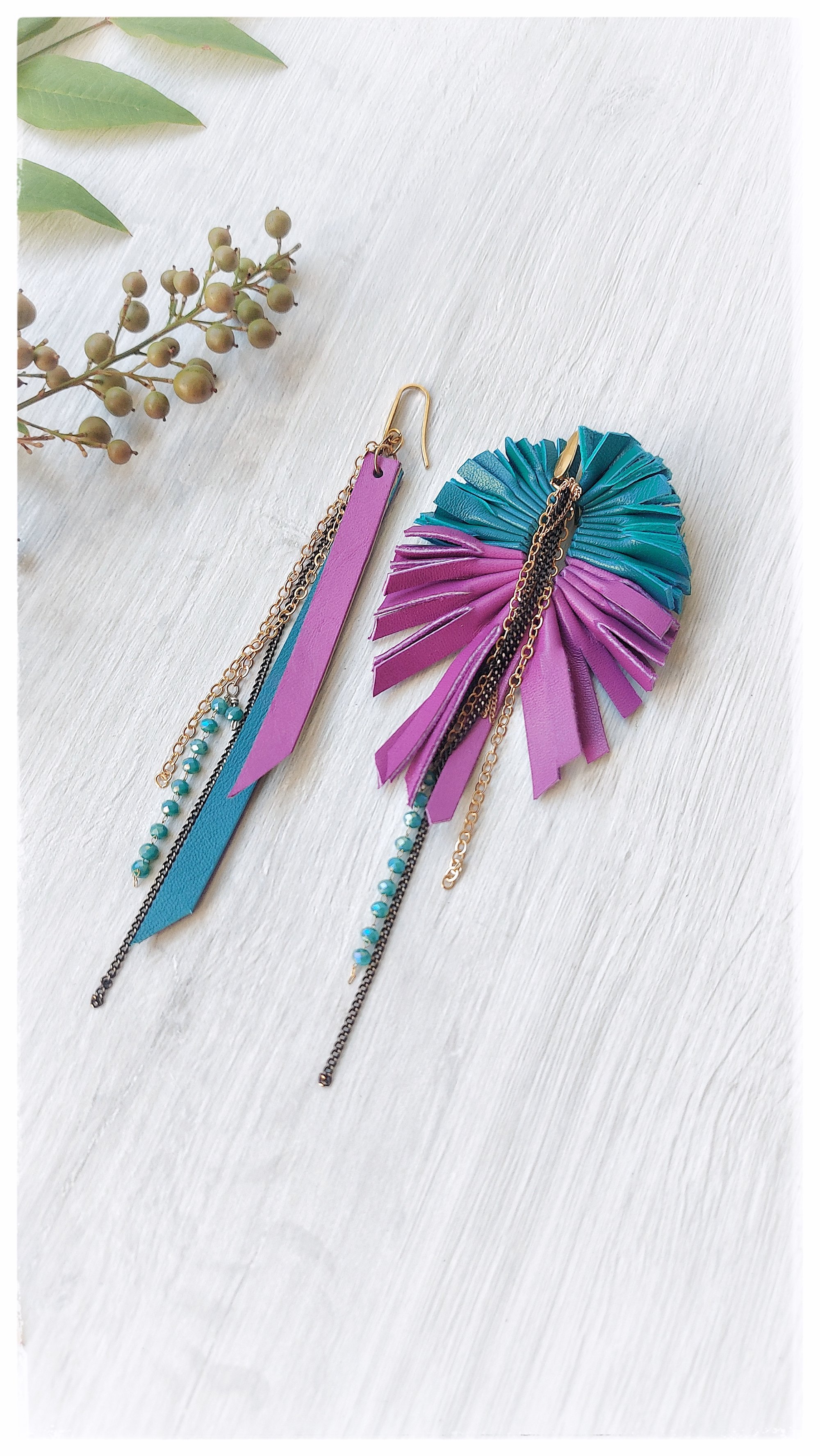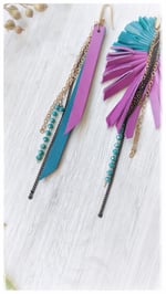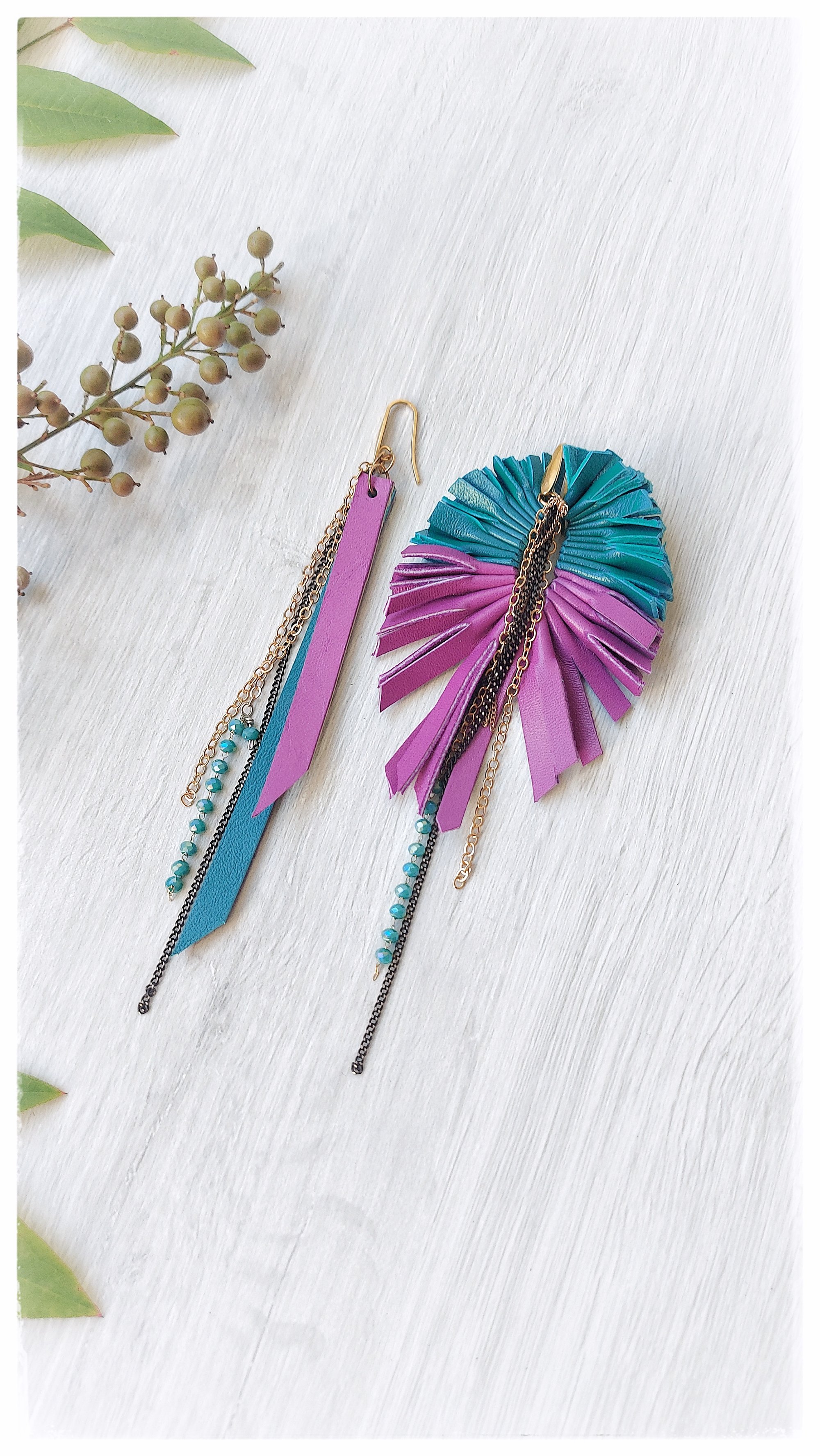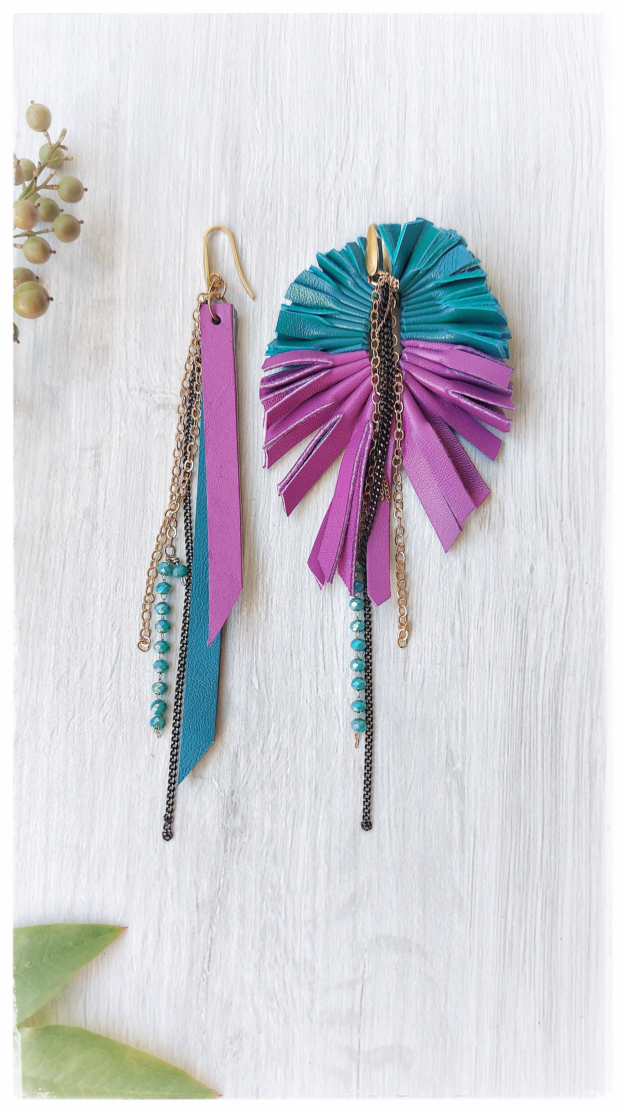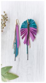 Maxi orecchini pendenti in pelle PEACOCK ASYM - SmeraldiPorpora