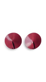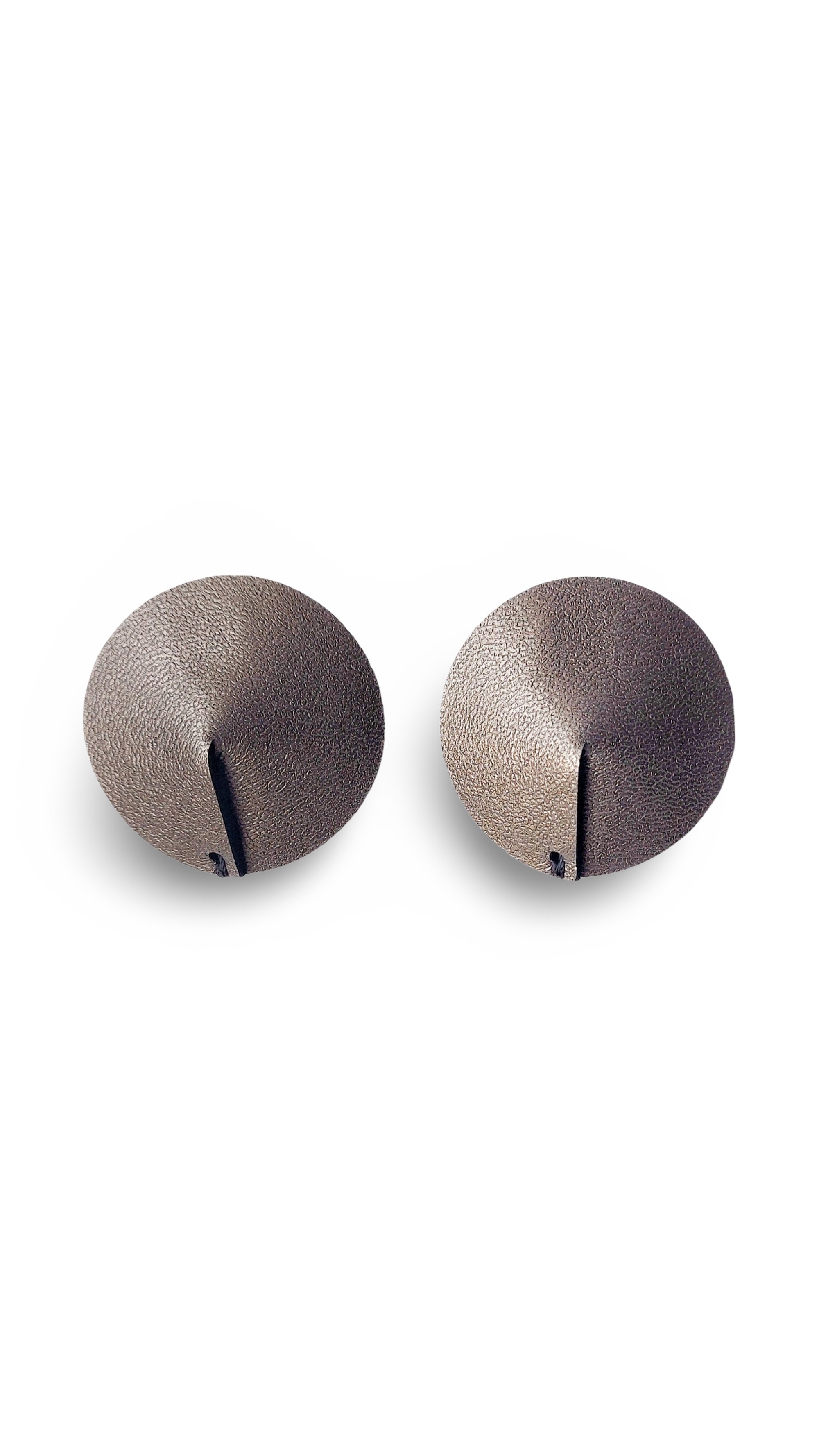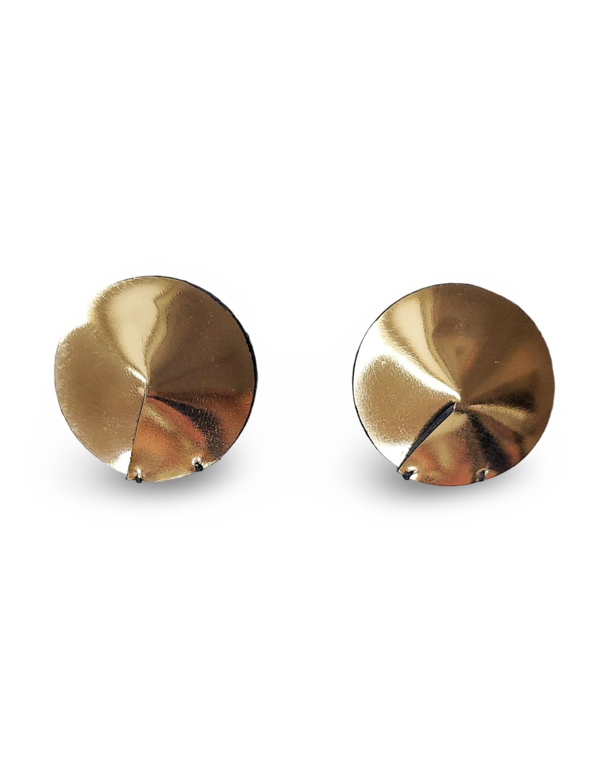 Gli orecchini, di medie dimensioni, a lobo, sono caratterizzati da dischi in pelle, cuciti a mano, con gancio in acciaio integrato.