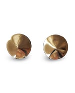 The medium-sized, stud earrings are characterized by hand-stitched leather discs, with an integrated steel stud.