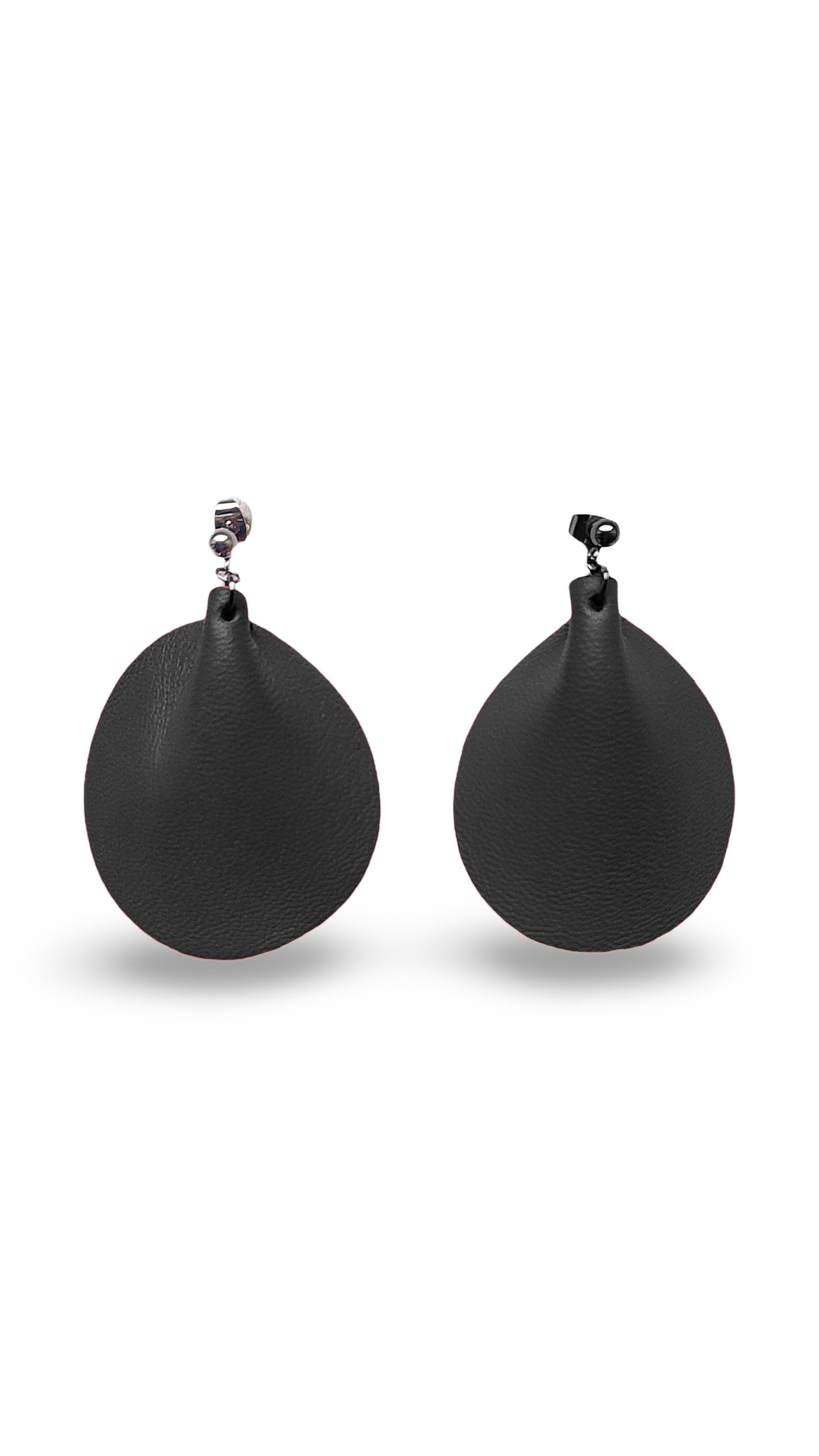 - Dangling earrings made of steel and leather, with an essential and elegant style. They are handcrafted using soft, high-quality Italian leather, which is exclusively sourced from end-of-line stock and production scraps, as well as leather hide; hypoallergenic steel hooks.