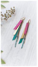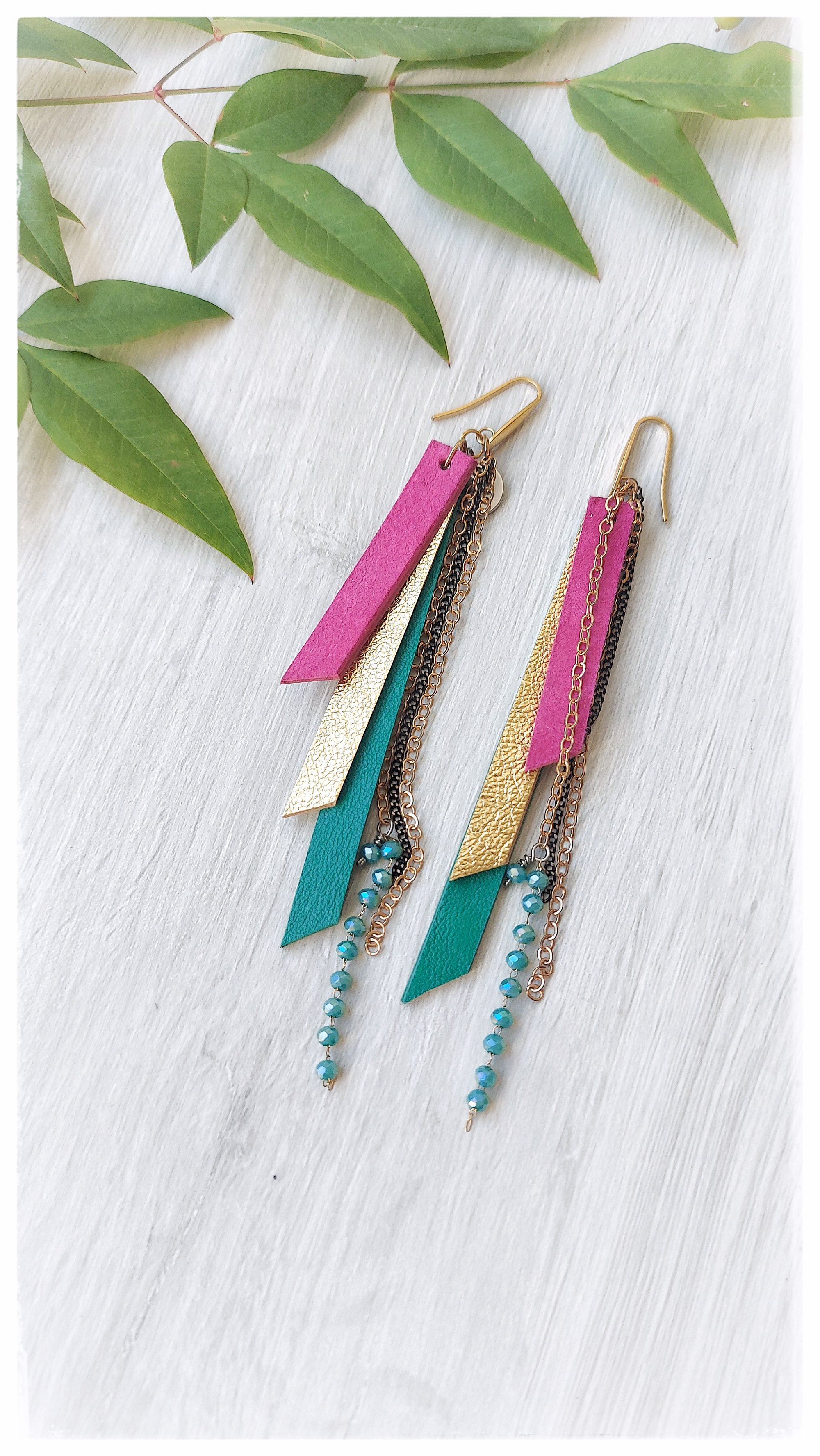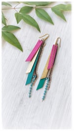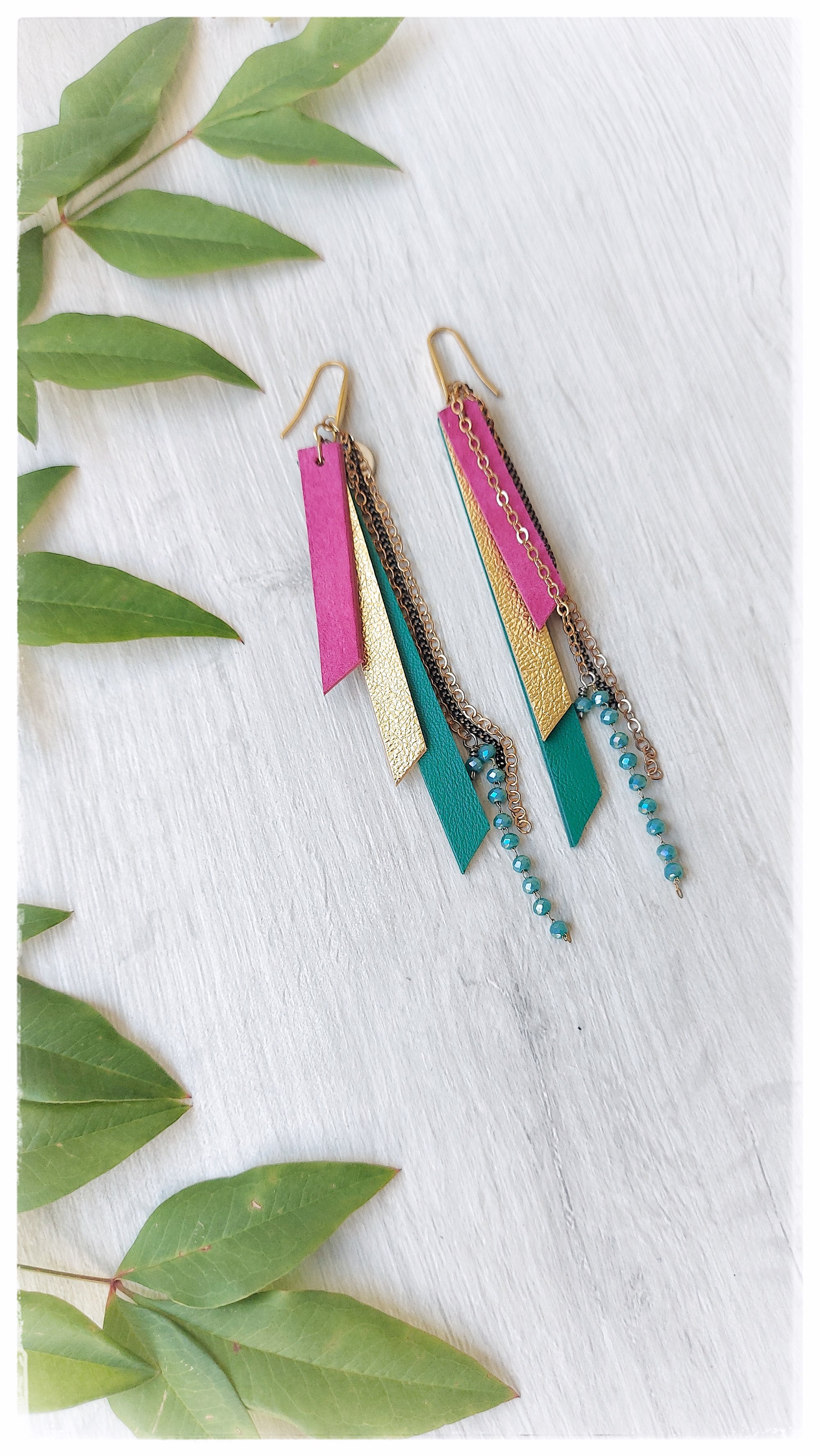 Orecchini pendenti in pelle NINFA CRYSTAL - FucsiaGreen