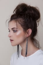 - Pendant earrings, realized by hand with soft, fine, italian leather, carefully selected and deriving exclusively from unused stock funds. Nichel free brass chains and hypoallergenic stainless steel hooks.