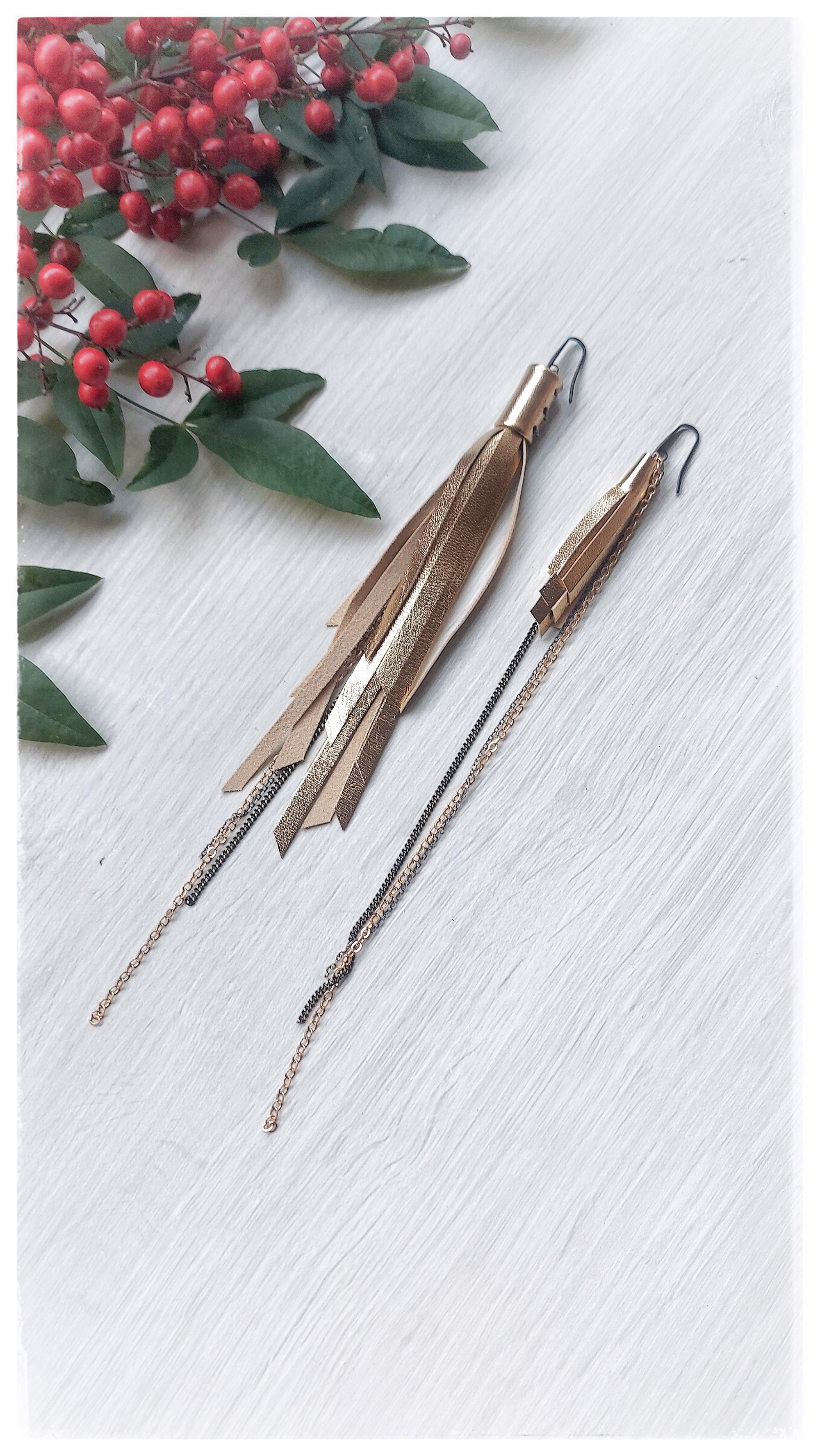 - Fine Italian leather (from end-of-series stocks and processing scraps), brass, steel and copper chains (hypoallergenic), brass hooks (hypoallergenic).