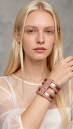 Bracciale bangle artigianale in pelle CAGE - Soft Sunset