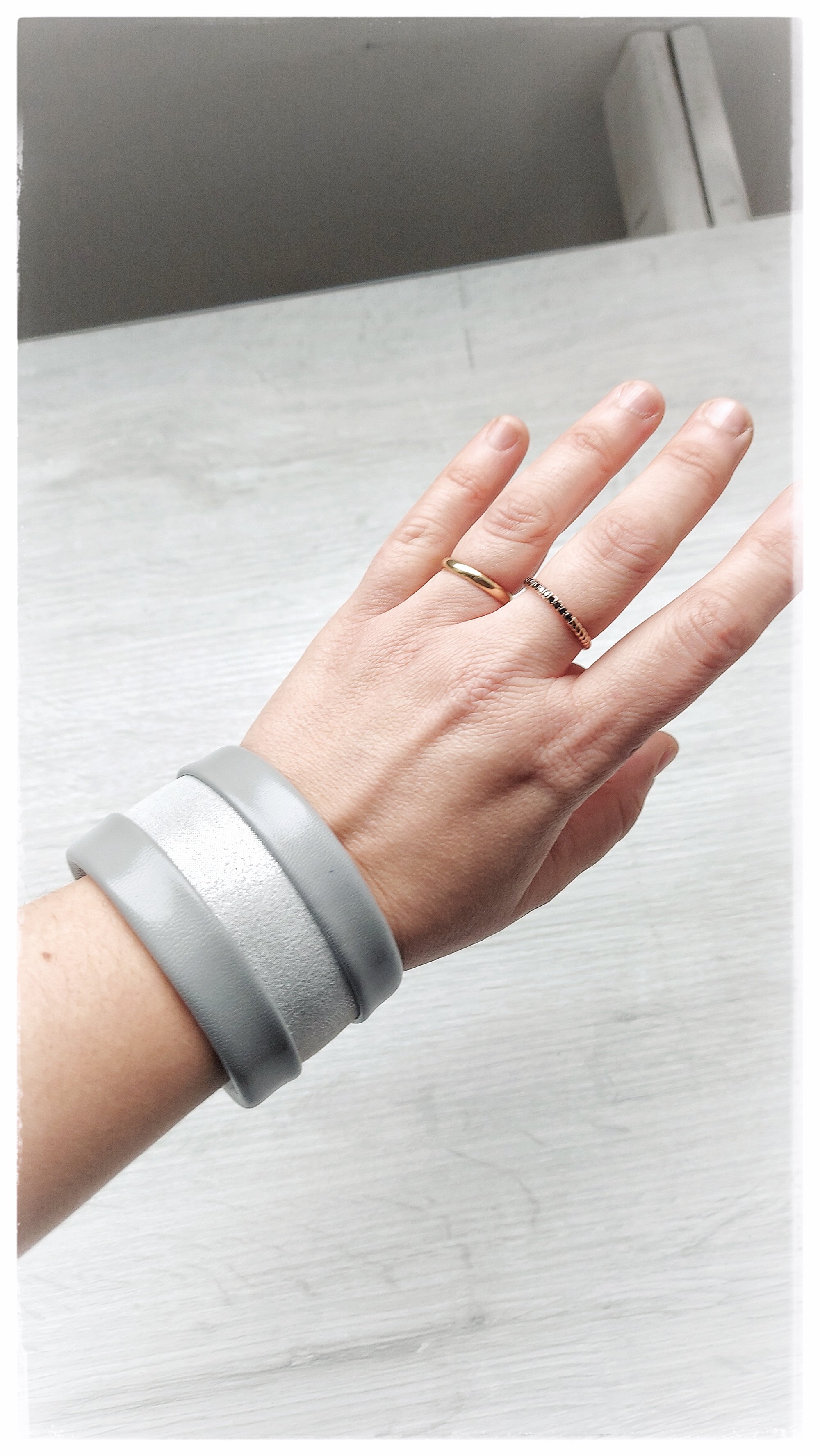 Bracciale bangle artigianale in pelle ESSENTIAL MEDIUM - Cenere