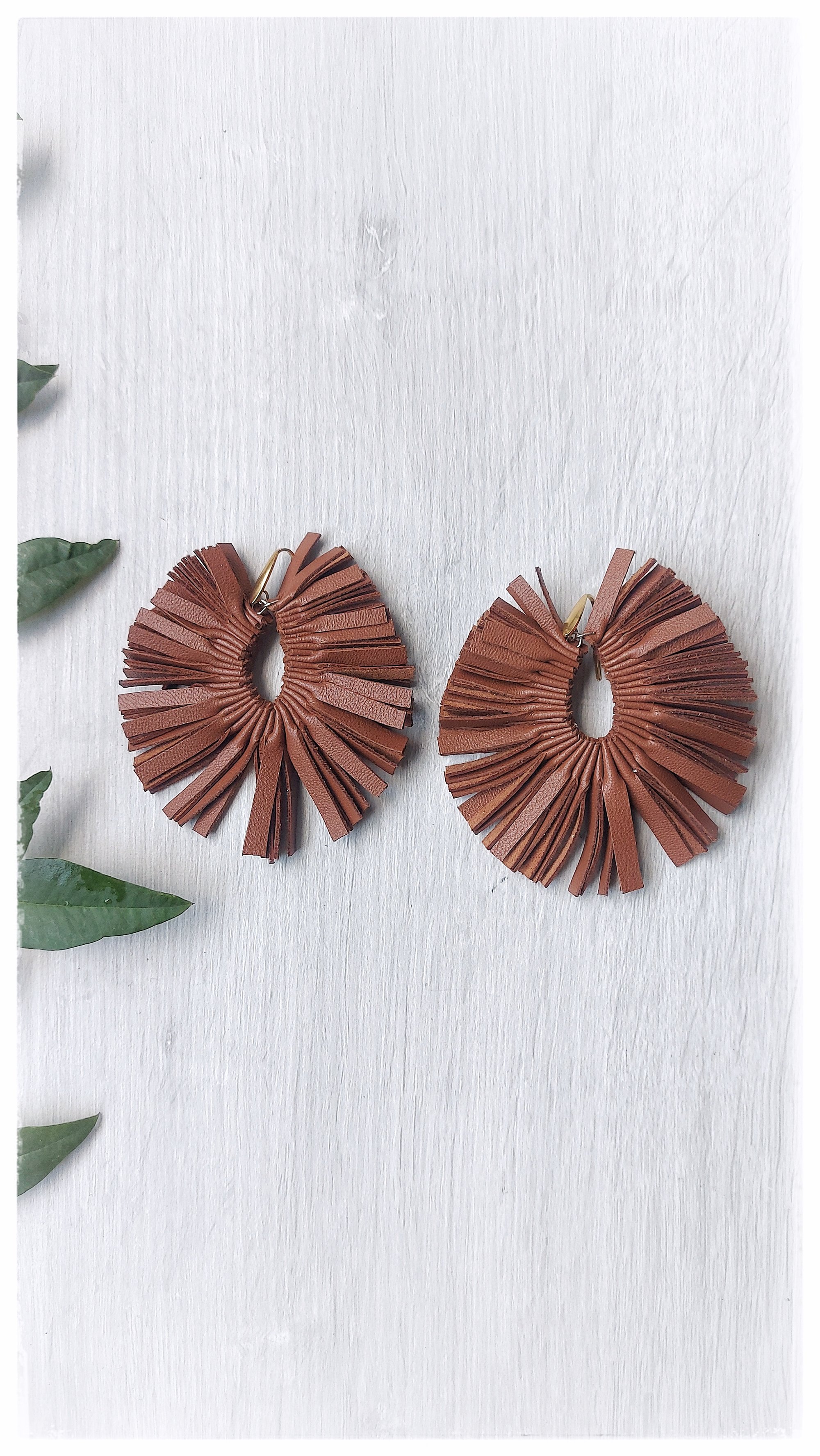 - Orecchini maxi a cerchio realizzati artigianalmente con morbida e pregiata pelle italiana accuratamente selezionata e proveniente esclusivamente da stock fine serie e scarti di lavorazione. Le frange, caratteristica formale di questo pezzo e dell’intera collezione Bodega Bay, sono tagliate a mano senza l’uso di fustelle.