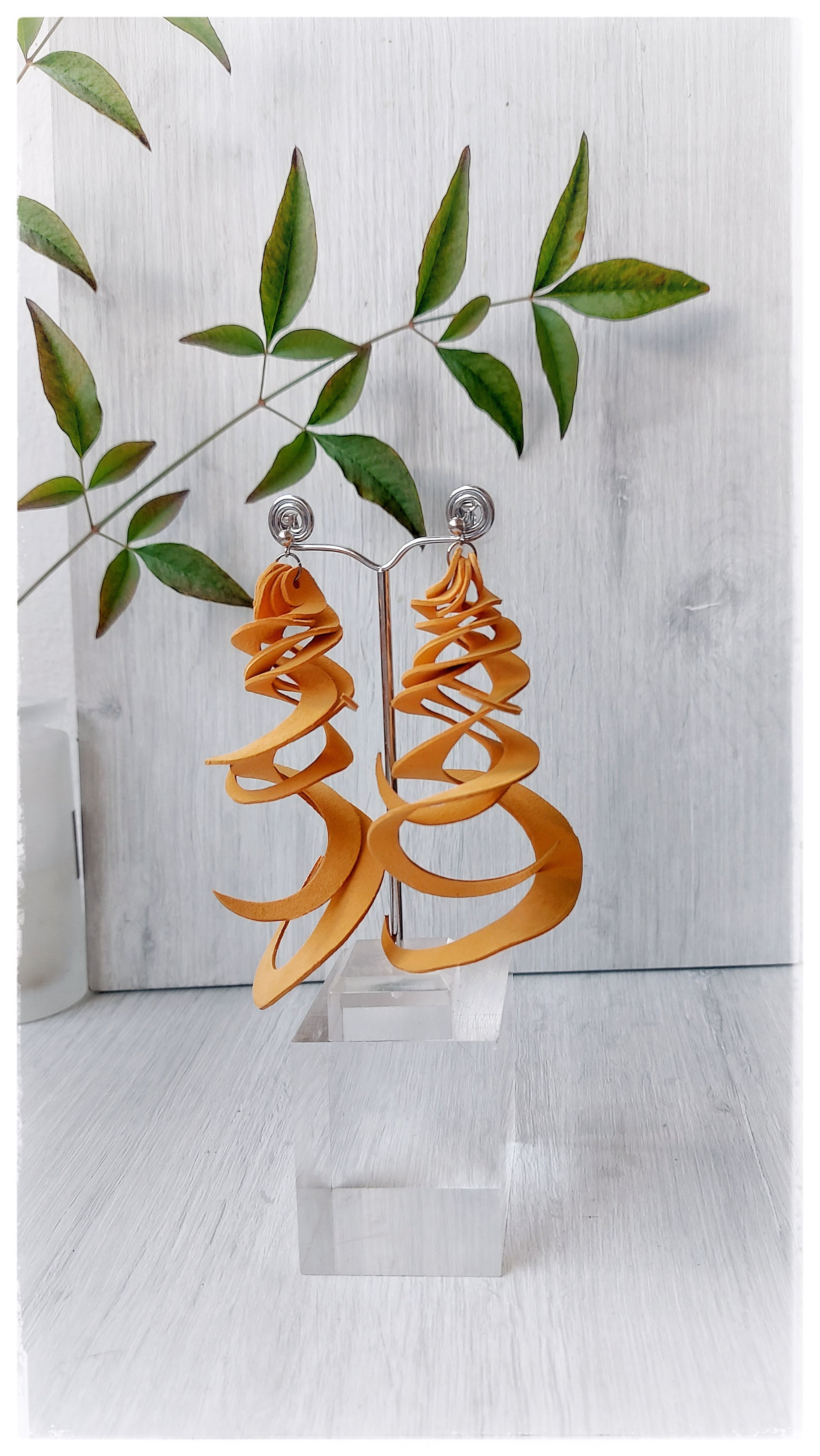 - Orecchini pendenti, realizzati artigianalmente con morbida e pregiata pelle italiana accuratamente selezionata e proveniente esclusivamente da stock fine serie e scarti di lavorazione. Perni in acciaio anallergico.